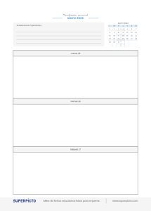 La agenda se presenta en formato PDF descargable por secciones y listo para imprimir y ser utilizado desde el primer día que iniciamos el curso.