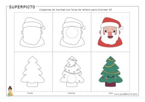 Ficha de aprendizaje sobre colgantes de Navidad con fotos para colorear realizada con una metodología divertida y didáctica con el fin de ayudar y facilitar el aprendizaje. La ficha se presenta en formato pdf descargable y listo para imprimir.