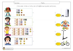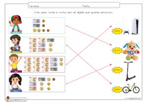 Ficha de equivalencias entre billetes y monedas para imprimir