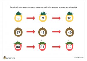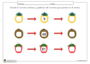 Ficha de aprendizaje sobre escribir el número anterior y posterior (sin apoyo explicativo visual) realizada con una metodología divertida y didáctica con el fin de ayudar y facilitar el aprendizaje. La ficha se presenta en formato pdf descargable y listo para imprimir.