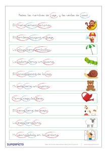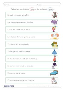 Ficha de aprendizaje sobre identificar los nombres y los verbos en oraciones realizada con una metodología divertida y didáctica con el fin de ayudar y facilitar el aprendizaje. La ficha se presenta en formato pdf descargable y listo para imprimir.