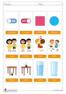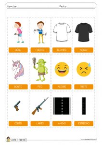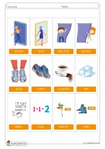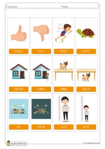 Ficha de aprendizaje sobre juego de palabras de significado opuesto realizada con una metodología divertida y didáctica con el fin de ayudar y facilitar el aprendizaje. La ficha se presenta en formato pdf descargable y listo para imprimir.