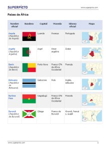 Esta ficha contiene el mapa de africa e información de todos los paises dentro del continente africano.