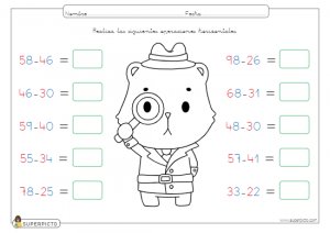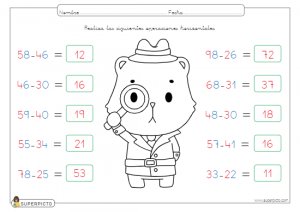 Ficha de aprendizaje sobre restas horizontales sin llevadas realizada con una metodología divertida y didáctica con el fin de ayudar y facilitar el aprendizaje. La ficha se presenta en formato pdf descargable y listo para imprimir.
