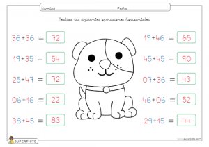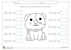 Ficha de aprendizaje sobre sumas horizontales con llevadas realizada con una metodología divertida y didáctica con el fin de ayudar y facilitar el aprendizaje. La ficha se presenta en formato pdf descargable y listo para imprimir.