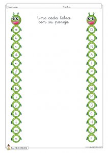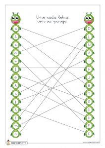Ficha de aprendizaje sobre unir cada letra con su pareja (oruga 1) realizada con una metodología divertida y didáctica con el fin de ayudar y facilitar el aprendizaje. La ficha se presenta en formato pdf descargable y listo para imprimir.