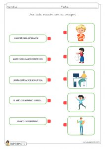 Ficha de unir cada oración con su imagen (MAYÚSCULAS) para imprimir