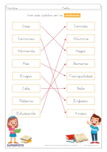 Ficha de aprendizaje sobre unir con su sinónimos realizada con una metodología divertida y didáctica con el fin de ayudar y facilitar el aprendizaje. La ficha se presenta en formato pdf descargable y listo para imprimir.