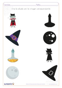 Ficha de Unir silueta con imagen correspondiente para imprimir