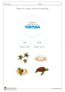 Ficha de aprendizaje sobre ficha del ciclo de vida de la tortuga realizada con una metodología divertida y didáctica con el fin de ayudar y facilitar el aprendizaje. La ficha se presenta en formato pdf descargable y listo para imprimir.
